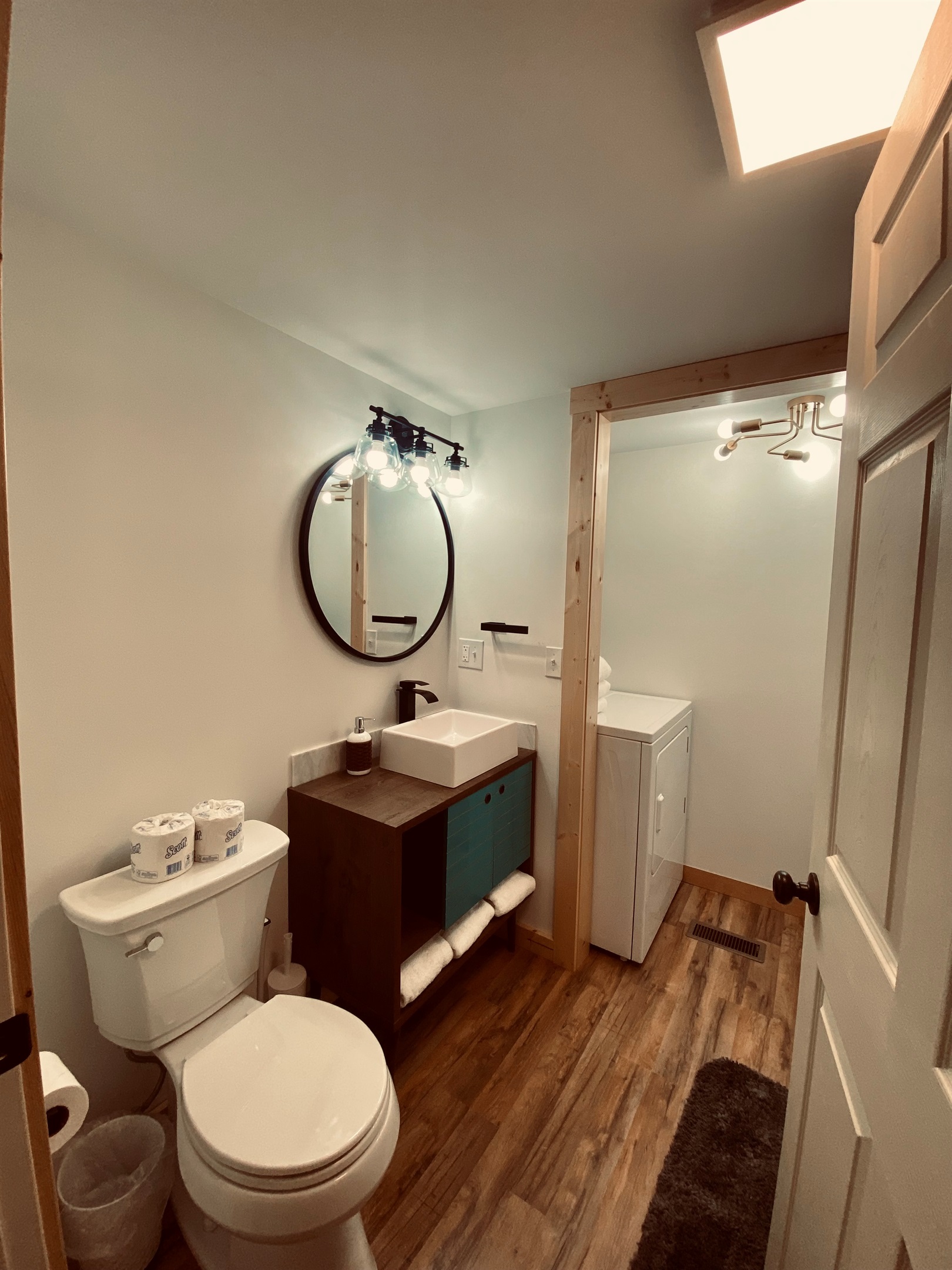 Full kitchen stocked with essentials, living space built for gathering, queen bedroom with memory foam mattress, full bath with tub and shower combo, walk-in closet, in-unit laundry.